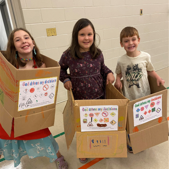 The kids did activities based on “God drives my decisions”. They made apple slice race cars, individual cardboard cars and went for a drive!